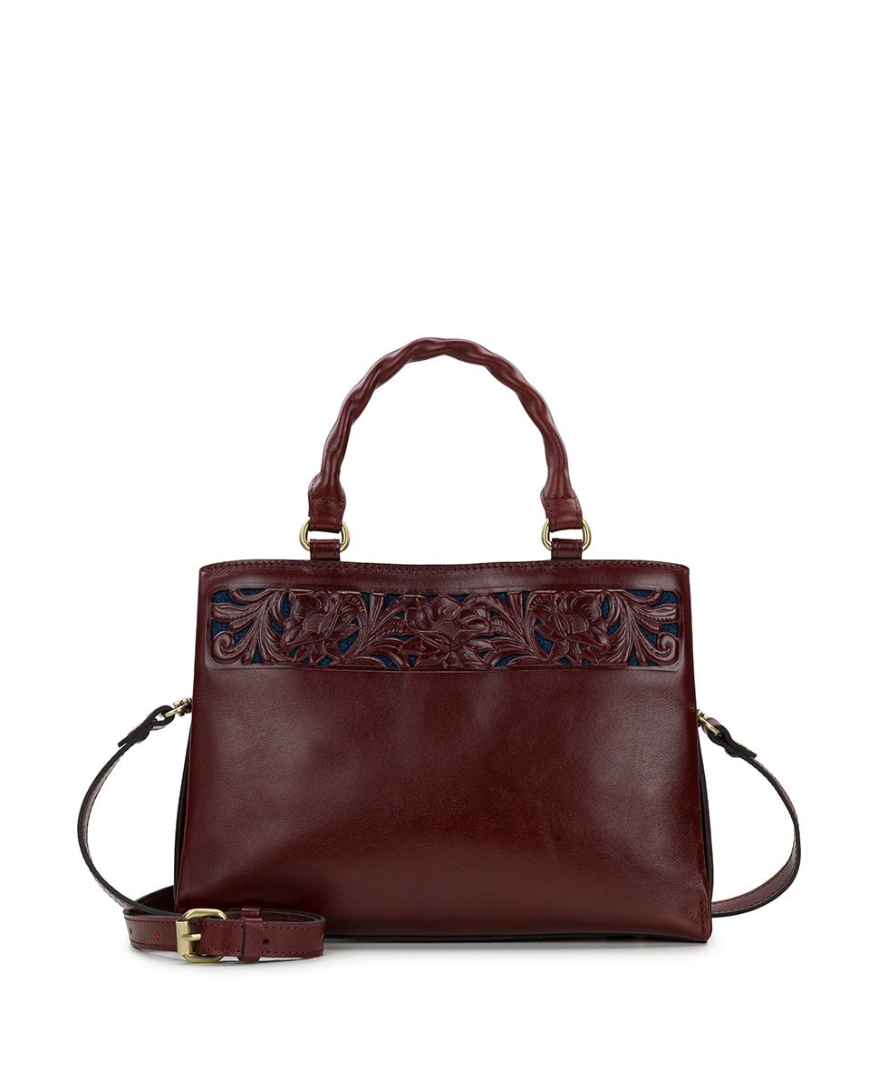 The Genovese is a timeless. luxurious handbag crafted in rich leather and adorned with our tooled strap. A true sensory experience. this beautifully designed bag feels as exquisite as it looks. Functional details include full-length front and back slip pockets with magnetic snap closures for quick access. and a spacious zippered main compartment for added security. Twisted rope leather handles add an elegant touch. while the adjustable. detachable strap offers styling versatility. With its refined craftsmanship and thoughtful design. the Genovese is a standout leather bag you’ll treasure for years.
