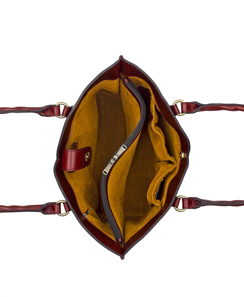 With errand-ready practicality. this structured bag is an appealing iteration of Patricia’s gorgeous totes. Crafted in luxurious leather and featuring protective metal feet. you’ll love the artistry of its design with its scalloped. heart-shaped opening and on-the-go attitude. Ingeniously designed interior and exterior pockets and the flexibility of twisted rope leather twin handles and an adjustable/detachable shoulder strap allow you to switch up the ways to carry it.