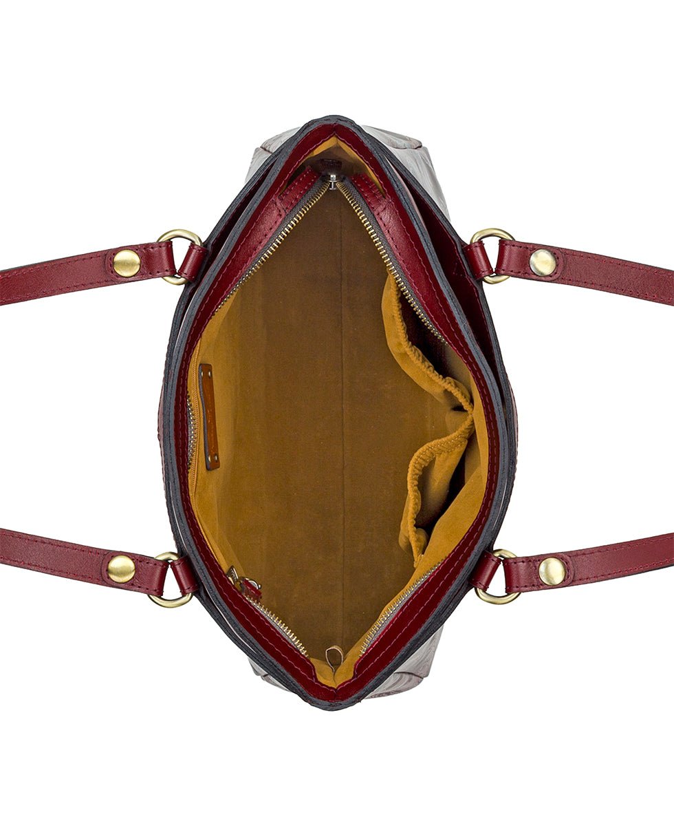 - Signature brushed brass hardware. heavy handcrafted stitching